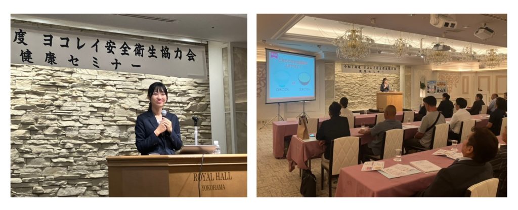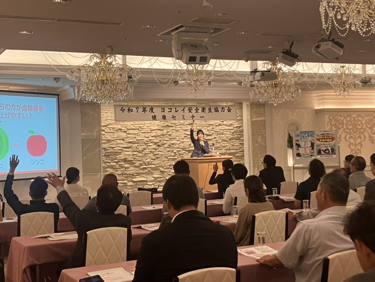 2025年9月19日(金)、ロイヤルホールヨコハマ(神奈川県横浜市)にて、さくら薬局グループ(クラフト株式会社)の管理栄養士が「大丈夫ですか?あなたの食事~糖質との上手な付き合い方~」というテーマで、株式会社ヨコレイの従業員とそのご家族向けに健康セミナーの講師を務めました。